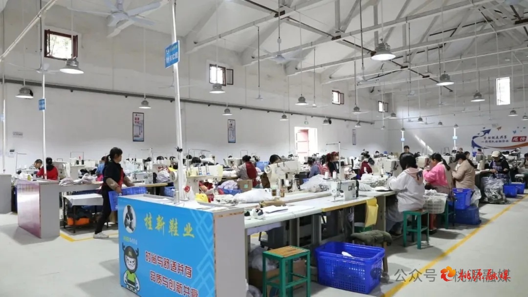 “坐在工位上,比在麻将桌前心里踏实多了!”在由漆河镇原粮站仓库翻修的桂新鞋业生产车间里,叶英一边熟练地缝合鞋舌,一边和记者聊天。