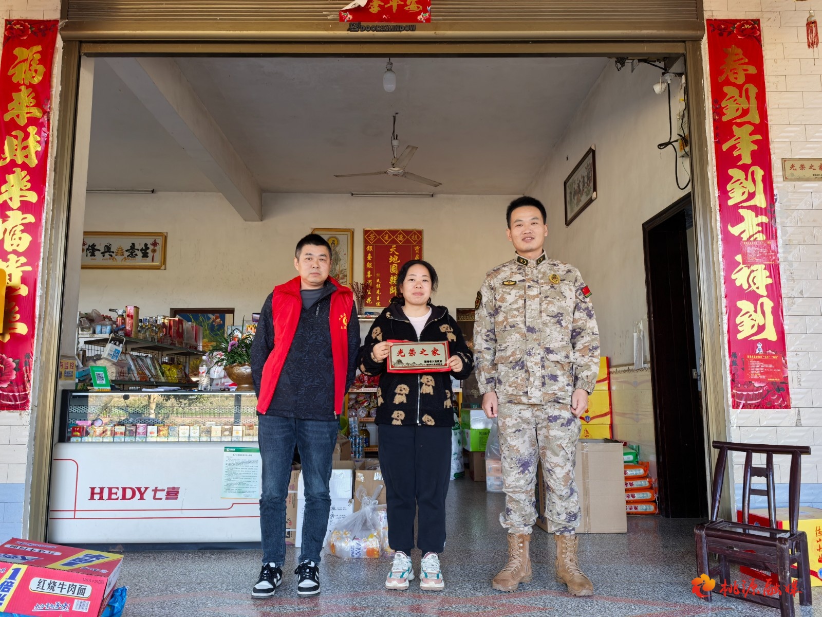 11月19日,阳光正好,杨溪桥镇人民武装部与退役军人服务站的工作人员一起,敲开了一扇扇2025年下半年入伍新兵家的大门,将金底红字的“光荣之家”荣誉牌,郑重地悬挂在一户户军属家庭的门楣之上。
