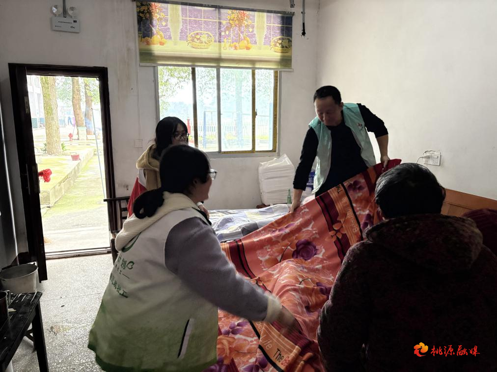 随后,志愿者们走进镇养老院,为老人们送去关怀与温暖。大家聚焦老人居住环境提升,认真整理床铺、规范被褥摆放,细致清扫房间地面、擦拭门窗与家具,让居住环境洁净舒适。服务间隙,志愿者们与老人们促膝交谈,详细询问身体状况和生活需求,耐心倾听老人回忆过往、诉说心声,现场暖意融融、亲情满满。一位老人动情地说:“你们来了,屋子亮堂了,我们心里也暖乎乎的。”
