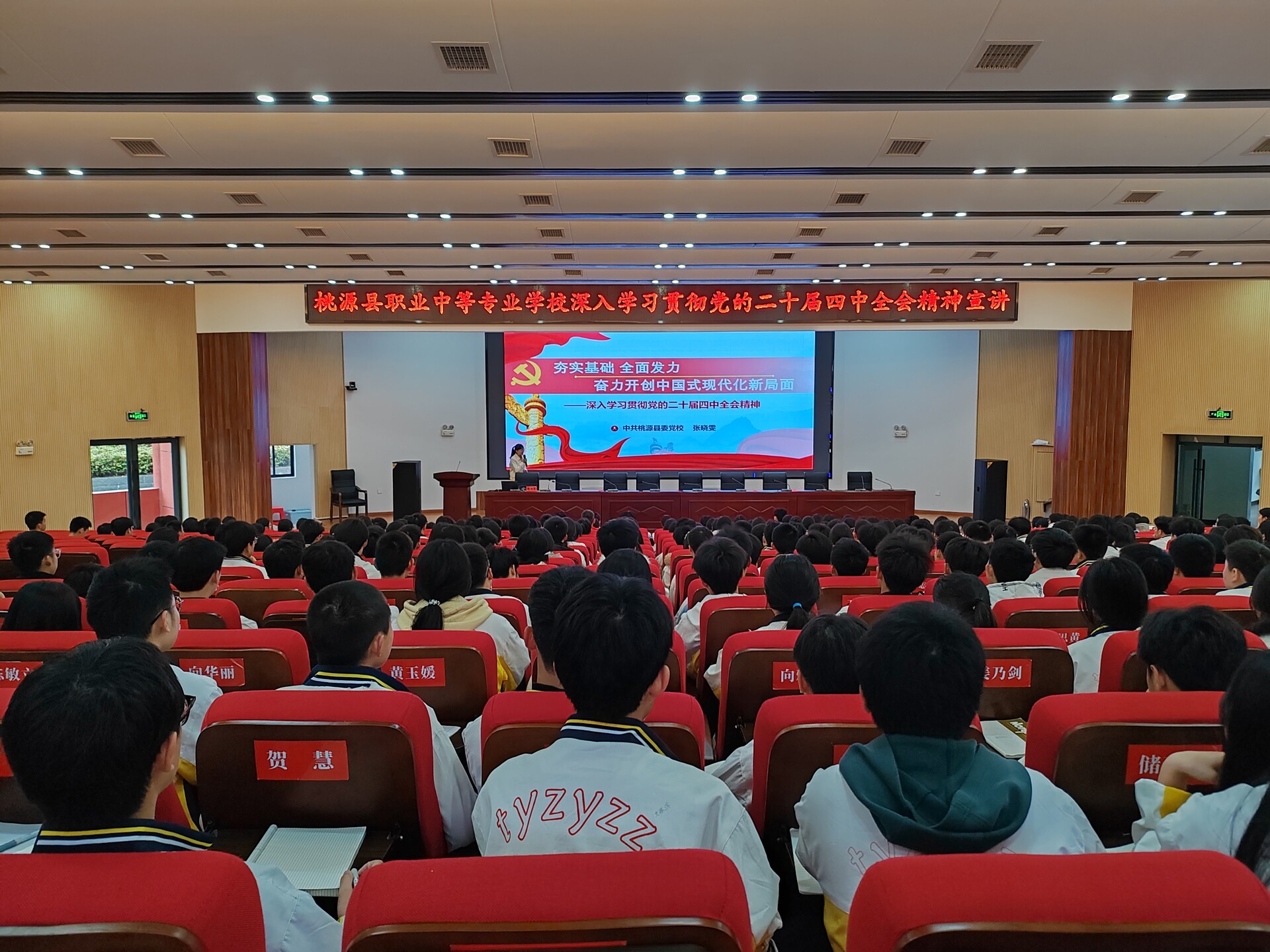 宣讲中,党校老师紧扣四中全会精神核心要义,运用鲜活案例、通俗语言,从历史方位、总体部署、战略任务、根本保证、贯彻落实五个方面,系统解读了全会关于国家治理体系和治理能力现代化的战略部署,深入阐释了青年学生在推进中国式现代化进程中的时代责任与使命担当。现场氛围庄重而热烈,学生认真聆听、积极思考,展现出良好的学习风貌。