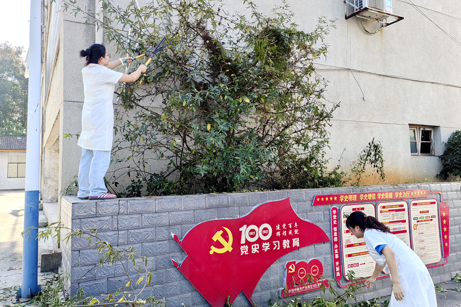 秀美桃源丨剪市镇中心卫生院开展“美化环境迎国庆”活动