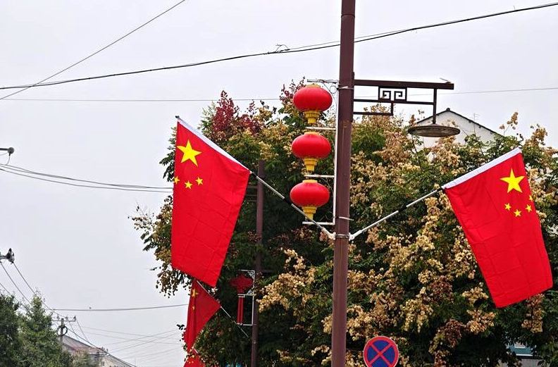 马鬃岭镇:悬挂国旗 喜迎国庆