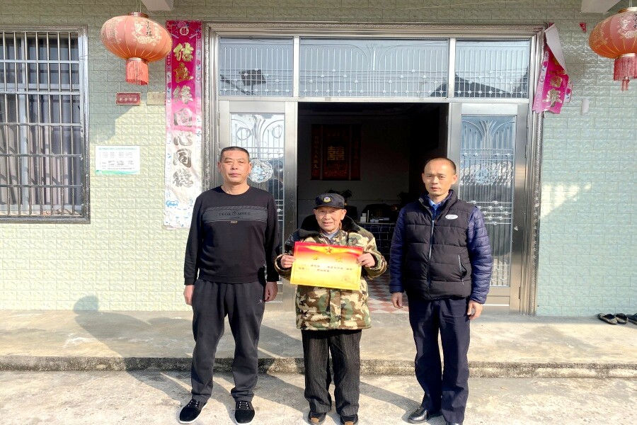 为杜坪军官黄楚文获得者家属送喜报